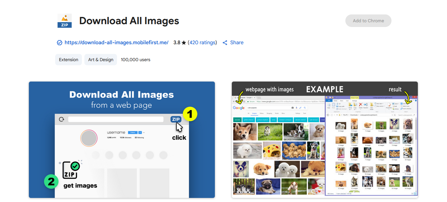 If you just need something quick and simple, Download All Images works well. It’s a browser extension that does exactly what its name says.